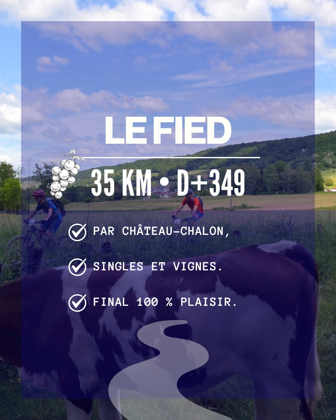 Passage par les bois de la Ruppe, Joly, de la Croix Grillot et Véru . Traversée de Château Chalon avant de descendre sur Voiteur puis rejoindre le dernier ravitaillement de Domblans en traversant la Seille. Passage du bois vernois, direction le Louverot et sentiers par le bois des Haies. Après la Fontaine aux Loups, single jusqu’à la Grange Robinet pour rejoindre des chemins nous menant à Lons via Montmorot.